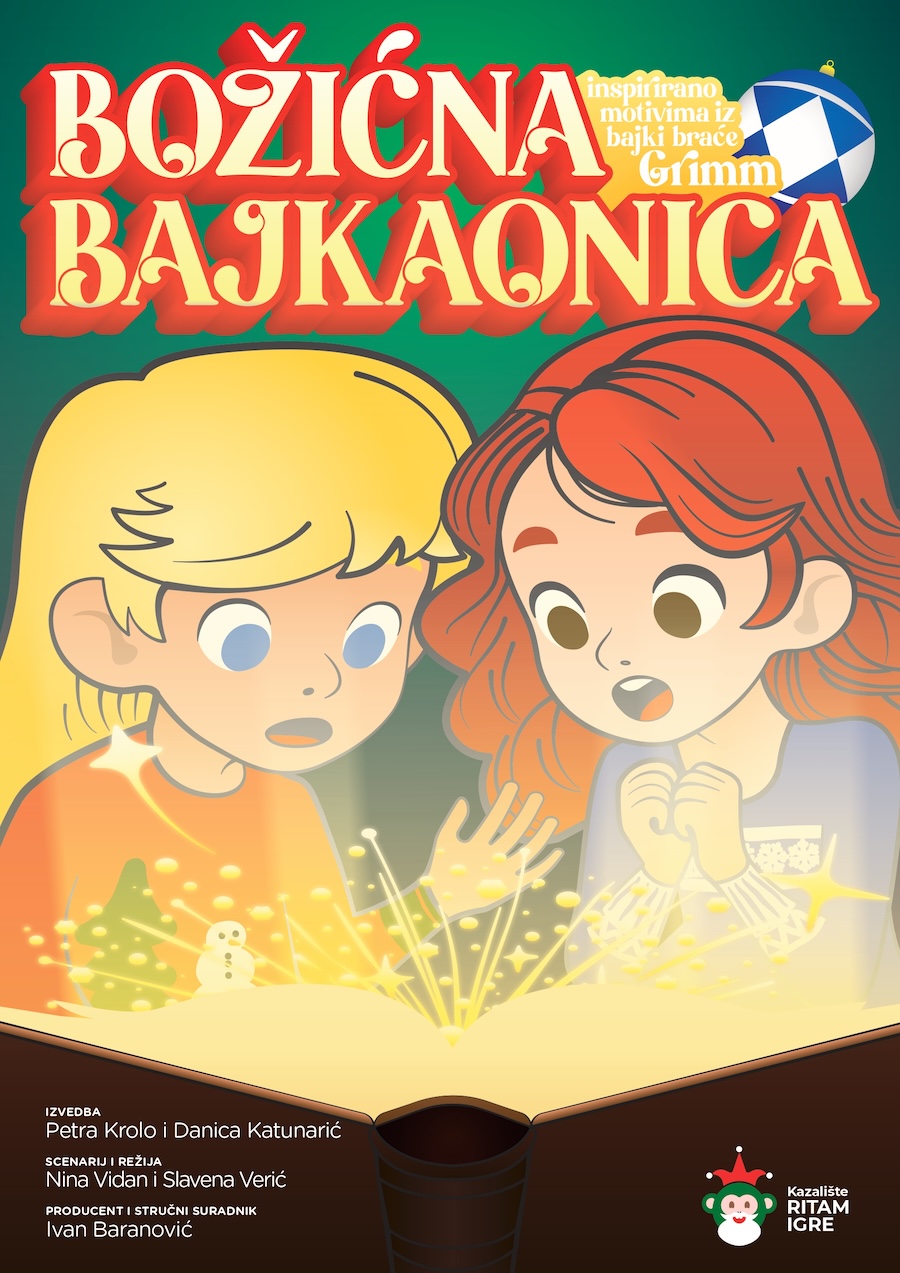 „Božićna bajkaonica“ je vesela i maštovita predstava inspirirana motivima bajki braće Grimm. Kroz igru, humor i glumu dvije sestre oživljavaju poznate bajkovite likove i priče, potičući dječju maštu, kreativnost i zajedništvo.