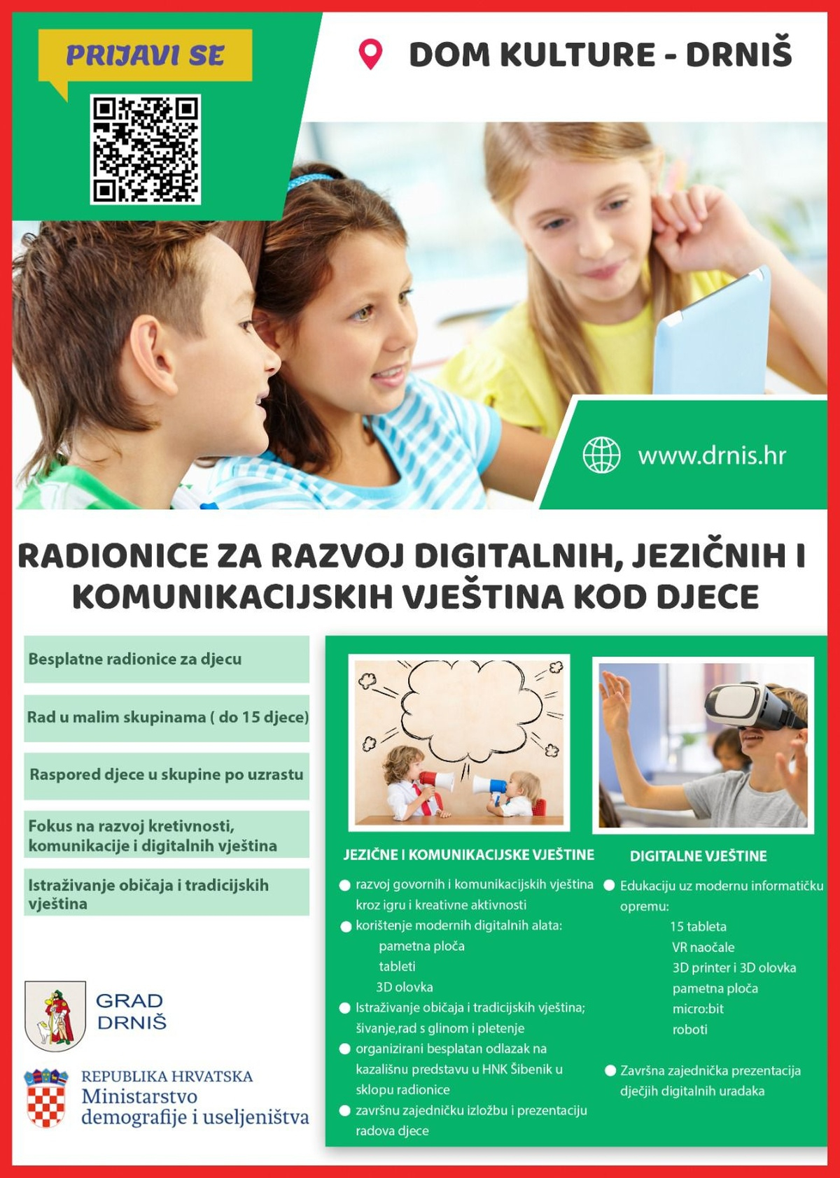 Ukupno je planirano 75 radionica – 25 radionica za razvoj jezičnih i komunikacijskih vještina, te 50 radionica za razvoj digitalnih vještina.